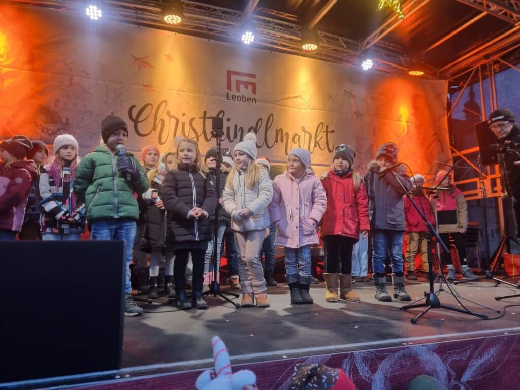 Der Chor der Volksschule Niklasdorf trat beim am Donnerstag dem 11.12.2025 Adventmarkt in Leoben auf und sorgte mit seinen Liedern für eine festliche Stimmung. Die Schülerinnen und Schüler begeisterten das Publikum mit einer fröhlichen und stimmungsvollen Darbietungen.