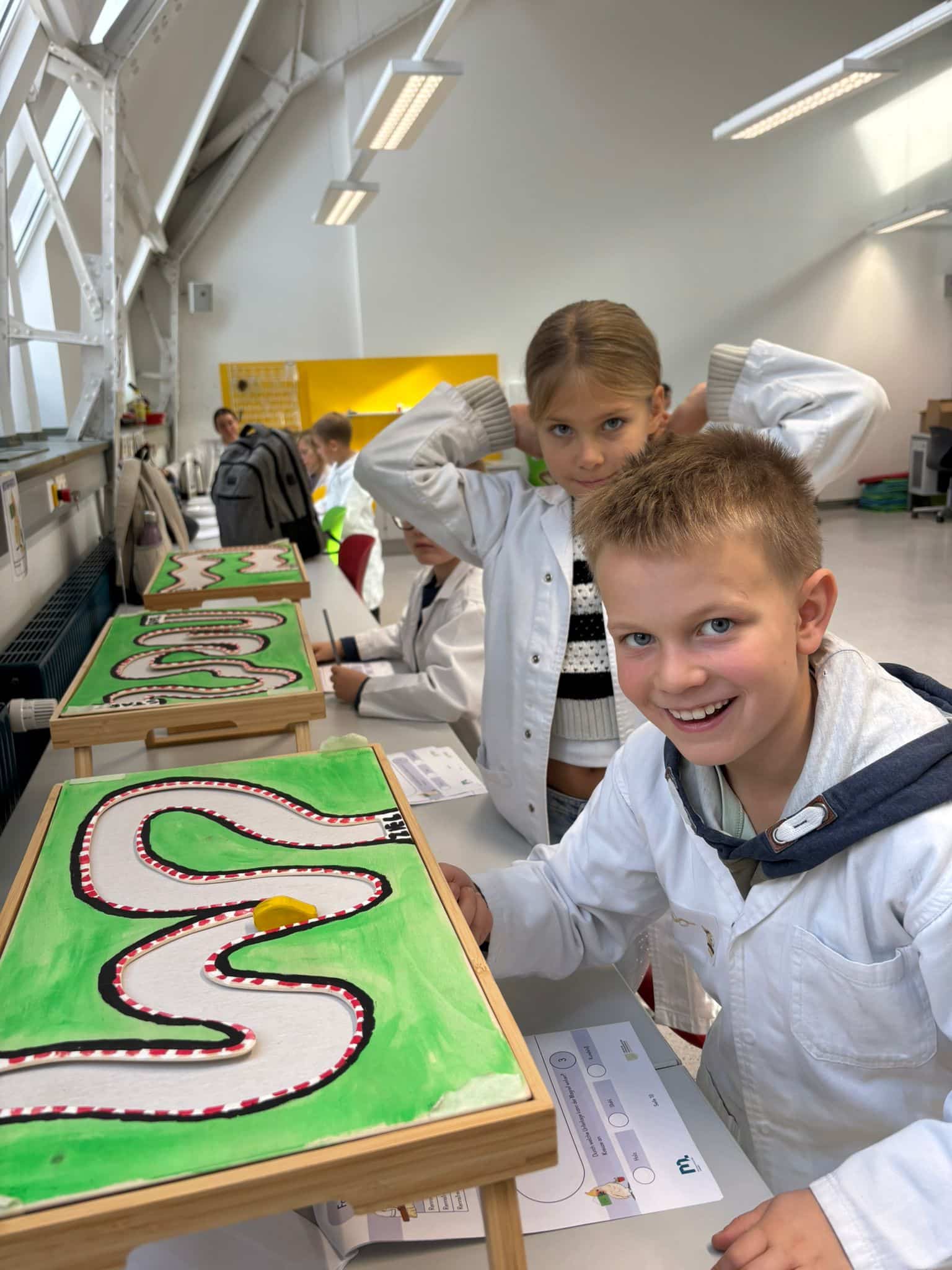 In kleinen Experimenten durften die Kinder selbst ausprobieren, forschen und entdecken. Der Besuch an der Universität war für alle ein besonderes Erlebnis und weckte viel Interesse an Naturwissenschaft und Technik.